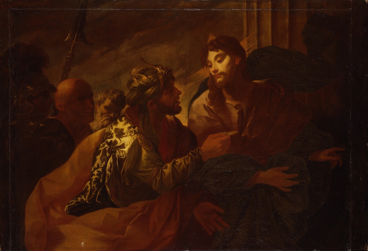 Non ci sono dati per precisare la data d'entrata del dipinto nelle collezioni del Palazzo. Col titolo "I Farisei che mostrano la moneta a Cristo" compare per la prima volta nei suoi inventari storici nel 1830 con una nota che ne indica la provenienza da "Casa Durazzo": fece quindi parte con certezza della quadreria dei marchesi Durazzo acquistata dai Savoia insieme alla dimora di via Balbi nel 1824, sebbene fosse inspiegabilmente ignorato sia dall'inventario del 1816, che da quello del 1823.