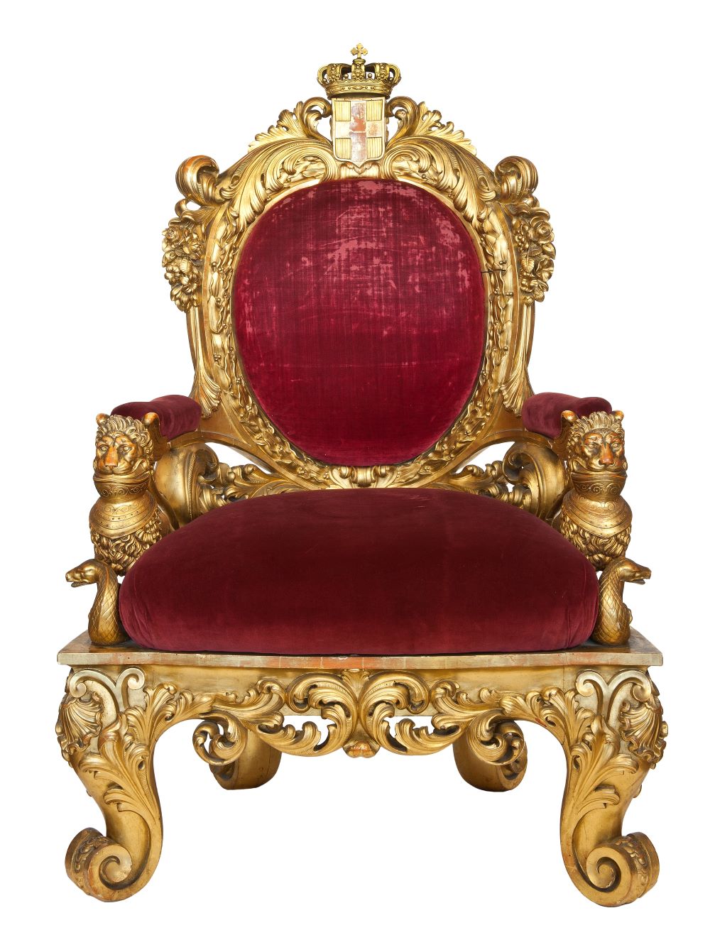 Il trono, elemento distintivo dell'omonima sala, è opera dell'ebanista piemontese Gabriele Capello detto Moncalvo (Moncalvo, 1806/ Torino, 1877).