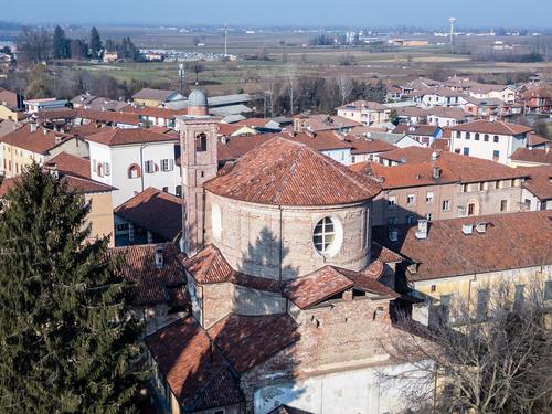 La chiesa della Beata Vergine delle Grazie, comunemente detta “del monastero” appartiene al complesso conventuale delle monache agostiniane di Lombardia che dal 1517 si insediarono nel centro storico di Villafranca Piemonte e svilupparono il loro monastero fino verso la metà del XVIII secolo, momento in cui ebbe il suo massimo splendore. Originariamente fulcro del convento oggi è uno spazio fondamentale per ospitare eventi culturali per la sua posizione centrale nel paese. Eretta nel 1702 fu completata a metà settecento con la facciata su progetto dell’architetto Dellala di Beinasco che creò una scenografia di notevole imponenza; divisa in due registri, convessa nella parte centrale, la facciata commette aspetti rococò e neoclassici particolarmente vistosi nel timpano ricurvo e aperto al centro verso uno dei quattro grandi finestroni della cupola. Lesene con capitelli decorati in stucco sottolineano la verticalità della facciata. Stucchi “rocailles” incorniciano sopra la porta centrale i simboli di Sant’Agostino e spesse modanature creano righe d’ombre orizzontali permettendo una dilatazione della facciata stessa in due piccole ali laterali, che risolvono felicemente il problema dell’aggancio della struttura architettonica stessa con gli adiacenti fabbricati del convento. L’interno della chiesa presenta in pianta la compenetrazione di un ovale con uno schema a croce. La cupola mostra una struttura apparente ad archi intrecciati dove intervengono rilievo plastico e pittura a racchiudere l’ovale centrale affrescato. Le decorazioni a stucco dei capitelli, dei frontoni e dei riquadri tra le lesene, i grandi fregi a corone e palme che si inseriscono negli spicchi che collegano il cornicione alla cupola, l’apparato plastico che incornicia l’icona dell’altar maggiore ed esalta la parte alta del fondale del presbiterio, mostrano l’eleganza di un esecutore raffinato. Completano la decorazione gli affreschi settecenteschi, con dieci storie della vita di Maria incorniciate da stucchi, eseguiti da Giuseppe Carrera.