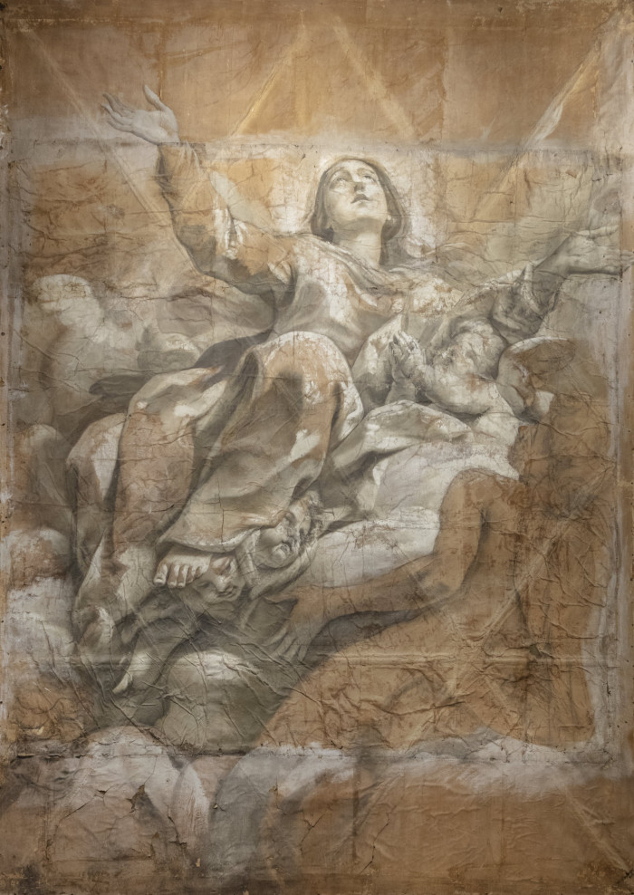 Dato il numero limitato di disegni e cartoni preparatori riferiti all’affresco della cappella della Madonna del Fuoco ritenuti certi dalla critica, il cartone con l’Assunzione della Vergine rappresenta una preziosissima testimonianza dell’iter creativo di Carlo Cignani.