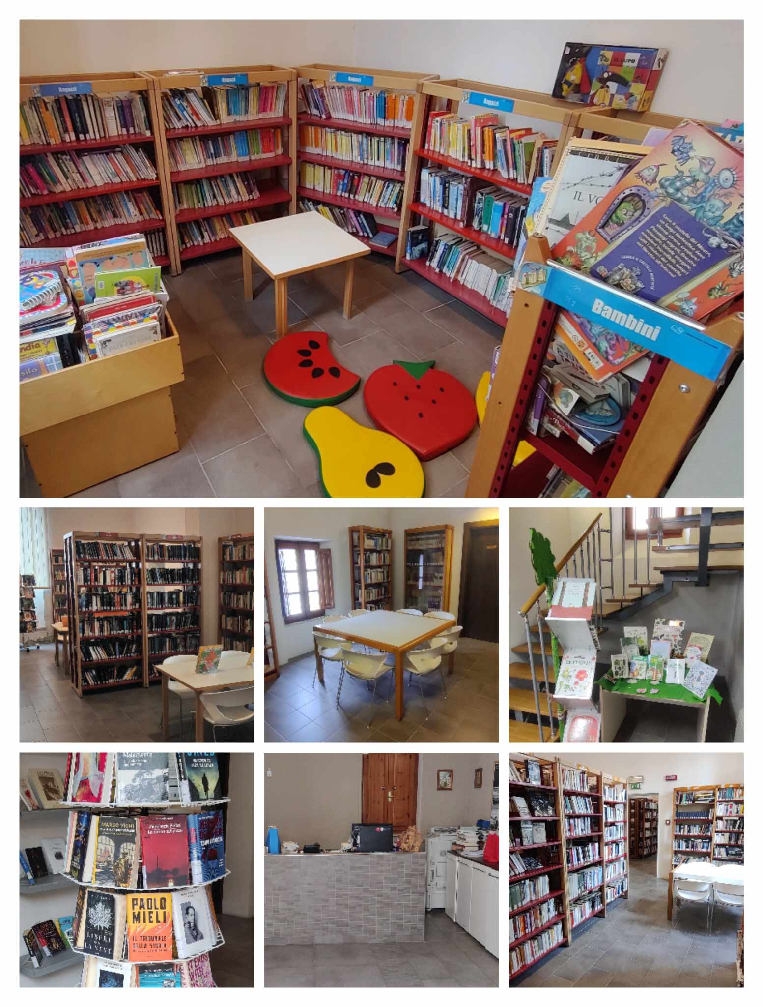La Biblioteca dedicata ad Antonio Gamberi è stata inaugurata il 29 aprile 1990 nella sede oggi ristrutturata. Oltre a possedere alcuni scaffali con libri, i punti funzionano anche come informagiovani e consente di accedere al mondo Internet. E' perciò possibile su Internet reperire informazioni sul lavoro, studio, cultura, sport, tempo libero, attività sociale, come esercitarsi su computer nell'utilizzo dei più comuni programmi di scrittura; tramite il computer, sempre, sarà possibile interrogare il catalogo informatizzato dei libri della biblioteca di Roccastrada e prenotare per la settimana successiva i libri desiderati che si trovano nella sede centrale. La Biblioteca Comunale ha un patrimonio di circa 19.000 volumi, organizzato, ad eccezione del fondo antico, a scaffali aperti, ovvero accessibili direttamente da parte del lettore. Il patrimonio è stato catalogato secondo le norme internazionali e informatizzato dapprima con il sistema CDS/ISIS 30, ora in linea tramite il software EasyCat, ordinato sugli scaffali secondo la classificazione Dewey (con qualche modifica riguardante il settore bambini/ ragazzi, letteratura di largo consumo, opere locali). Il materiale copre le più ampie esigenze del pubblico locale ed in particolare risulta congruo nelle discipline letterarie e storiche. Mediamente ogni due settimane, a cura del direttore, avviene l'approvigionamento presso la ditta affidataria. I nuovi acquisti vengono esposti in un supporto girevole all'entrata della biblioteca e viene redatto settimanalmente un piccolo opuscolo con le recensioni dei volumi acquistati. La biblioteca offre anche una sezione locale (che sta raccogliendo tutto ciò che è stato pubblicato sulla zona, oltre ad opere generali sul territorio provinciale), una sezione ragazzi (circa 1200 volumi di recente pubblicazione) e una sezione di consultazione (con dizionari, vocabolari, atlanti, enciclopedie, ...).